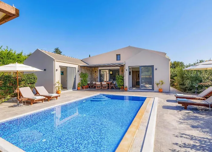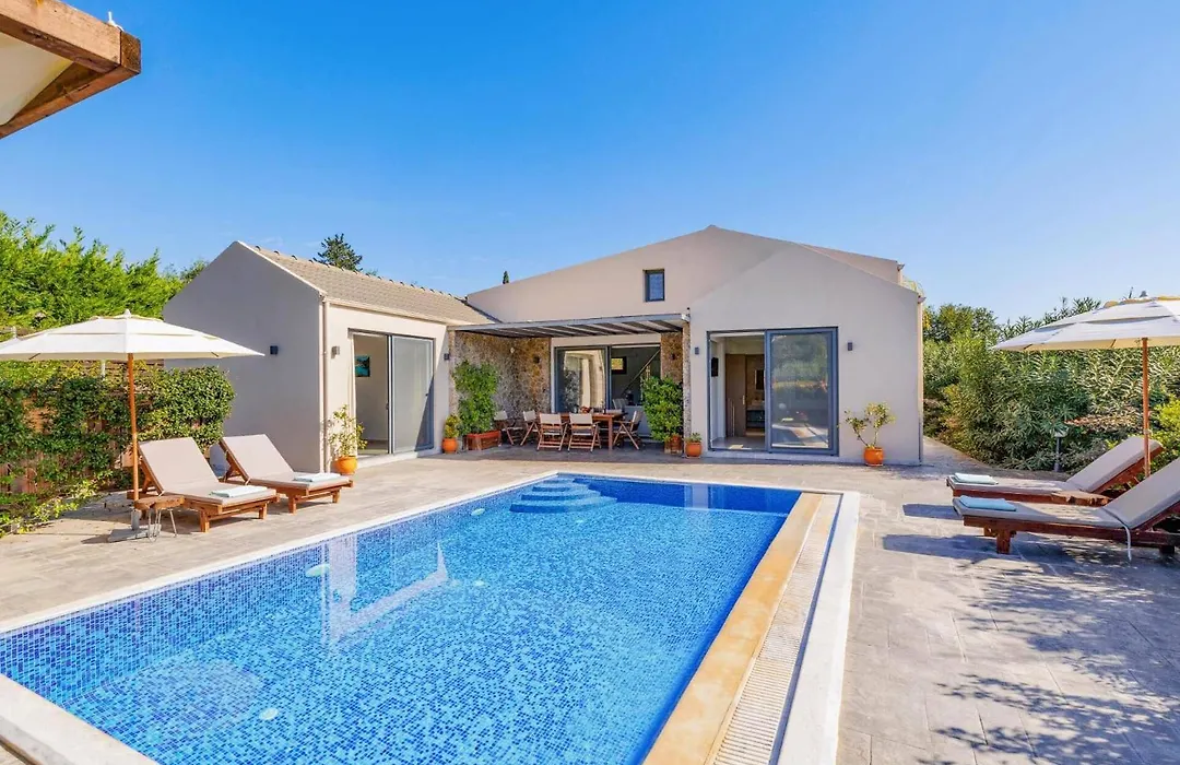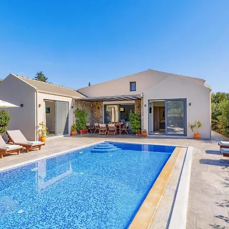 Villa Oras Corfu Anastasia By Villa Plus提供住宿,设有私人游泳池和设施齐全的厨房. 此场所共有2间卧室和2间浴室.